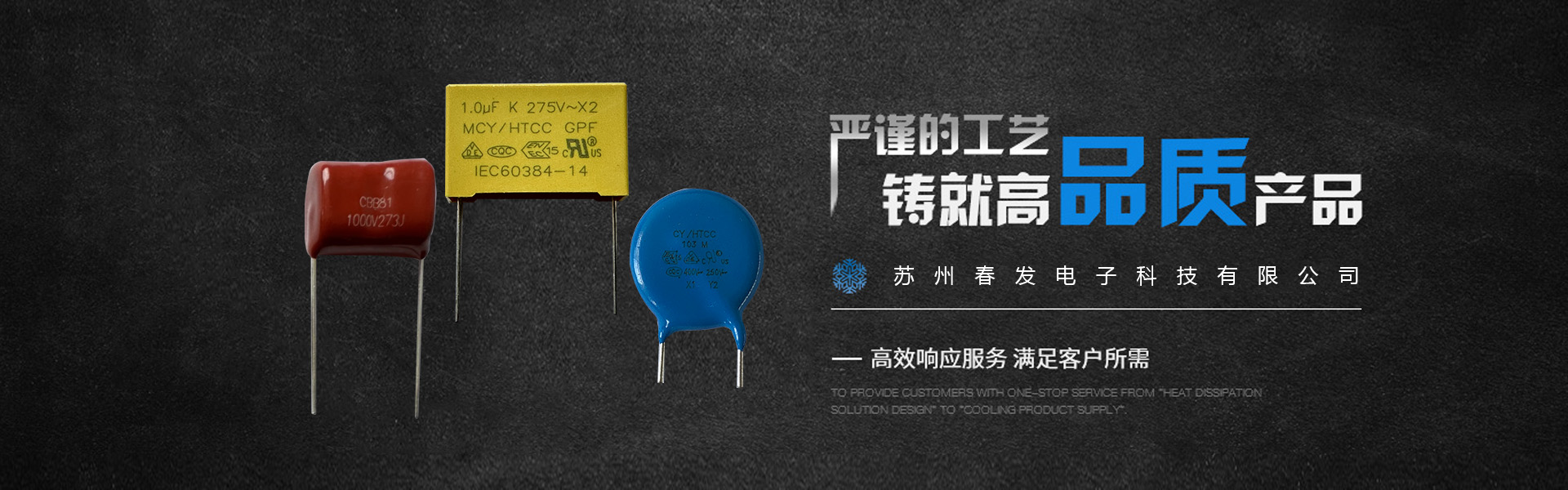 蘇州春發(fā)電子有限公司成立于2013年04月,是一家專(zhuān)注于電容器產(chǎn)品生產(chǎn)、銷(xiāo)售及售后為一體的專(zhuān)業(yè)企業(yè)。在經(jīng)過(guò)前面3年的臺(tái)灣品牌HTCC電容、臺(tái)灣品牌VDR壓敏電阻、臺(tái)灣品牌CANNWELLI濾波器)銷(xiāo)售為主,其它電子元件配套為輔等經(jīng)營(yíng)模式,使得公司規(guī)模不斷發(fā)展壯大。公司于2017年07月正式承包臺(tái)灣品牌HTCC(暄泰)全系列電容之生產(chǎn)、銷(xiāo)售及售后等一條龍服務(wù),以滿(mǎn)足客戶(hù)更多的需要。企業(yè)發(fā)展離不開(kāi)質(zhì)量,質(zhì)量的好壞決定一個(gè)公 司的競(jìng)爭(zhēng)力和生命力。企業(yè)要永續(xù)經(jīng)營(yíng),必須要有良好的質(zhì)量作為推動(dòng)力。
